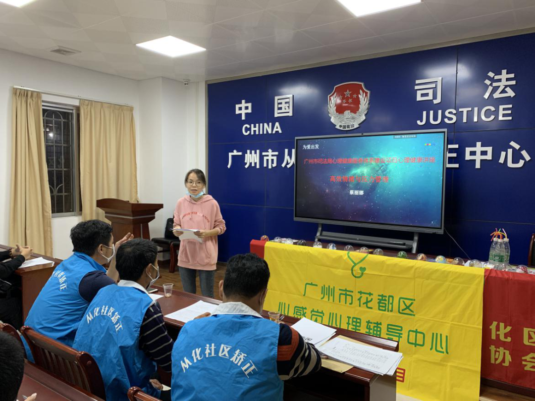 为了进一步加强对社区矫正对象心理健康引导,有效管理社区矫正对象,2020年10月29日,从化区司法局街口司法所邀请“心感觉心理辅导中心”司法社工蔡丽娜,在从化区社区矫正中心开展关于“高效情绪与压力管理之道”的心理健康教育讲座,街口街社区矫正对象40多人参加讲座。