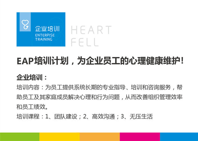职场压力与情绪管理课程将和您分享如何管理情绪和压力(包含16种应对策略和12种放松技术),让您学会在日常工作与生活中有效调整自己的情绪,化压力为动力,并以乐观、积极、自信与关爱影响周围的人,做一个“快乐工作,乐活人生”的成功人士。 课程对象:各层级 2、压力与情绪管理 压力与情绪管理课程的培训,将帮助学员: 缓解和“压力先生”的紧张关系,甚至可以形象地称为“拥抱压力”; 自己、自己的压力作为观察和分析的对象,不再做压力的奴隶; 判断压力过剩的拐点,在关键的时候停下脚步,避免猝死和自杀; 有效性和紧急性原则已经不能帮助我们完全摆脱压力,我们有更彻底的办法。 课程对象:企业中所有人员,部门经理,中高层领导。 3、情绪与压力管理 情绪与压力管理课程,旨在使学员了解: 情绪与健康的关系,掌握对待压力的正确方法; 熟悉:压力与情绪的关系以及压力的几种状态; 学习:正确解读与认知我们的情绪; 熟练:掌握压力管理的策略和方法; 解读:准确解读各种情绪背后的根源。 课程对象:各层级,需要调动他人情绪以达成绩效的管理岗位,如销售、客服等。 4、情绪管理与压力缓解 情绪管理与压力缓解课程培训,内容涉及认识压力,影响压力形成的因素,常见情绪的管理方法,调适心理,提升压力与管理的能力,几种实用而有效的减压技巧等,旨在使学员改善自我意识与人际关系,实现自我激励,从而达到心理素质提升的目的。 课程对象:本课程适合希望提高情绪管理能力的各类职业人士,比如部门经理/主管、在职员工等。 5、(内训)压力与情绪调节工作坊 压力与情绪调节工作坊课程培训,旨在使学员找到自我情绪的源头,掌握立刻化解困惑的智慧,学会心灵沟通技巧,体验自我潜意识对话情景,找回心灵的宁静,改善人际关系,提高工作绩效,促进工作生活平衡,提高员工忠诚度,树立企业人文关怀的形象。 课程对象:各层级